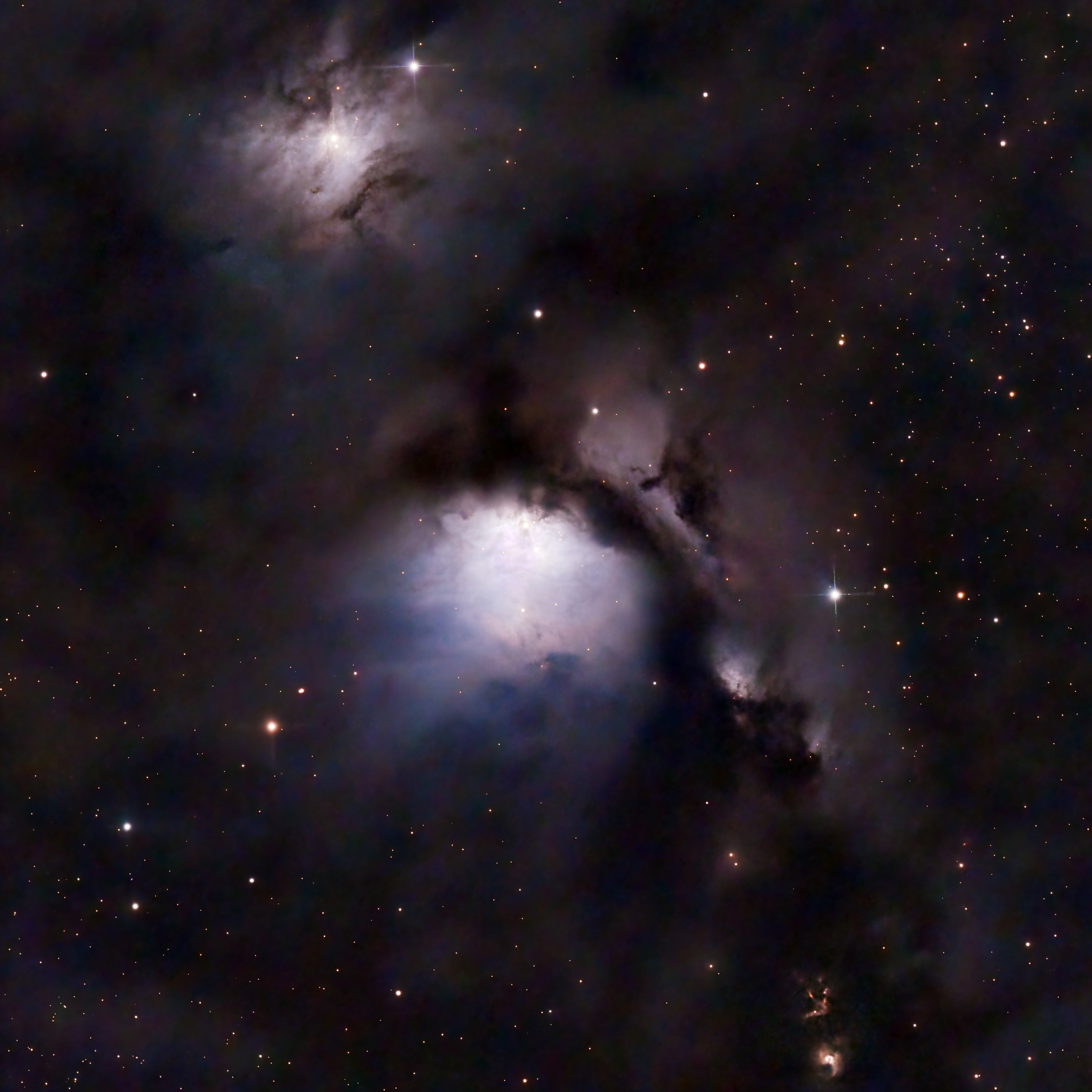 Messier 78 or M78, also known as NGC2068, is a reflection nebula in the constellation Orion. M78 is the brightest diffuse reflection nebula of a group of nebulae that also includes NGC2064, NGC2067 and NGC2071. All of these are visible in this photo. The group of nebulae belong to the Orion B molecular cloud complex and are located about 1,350 light-years distant from the Earth.