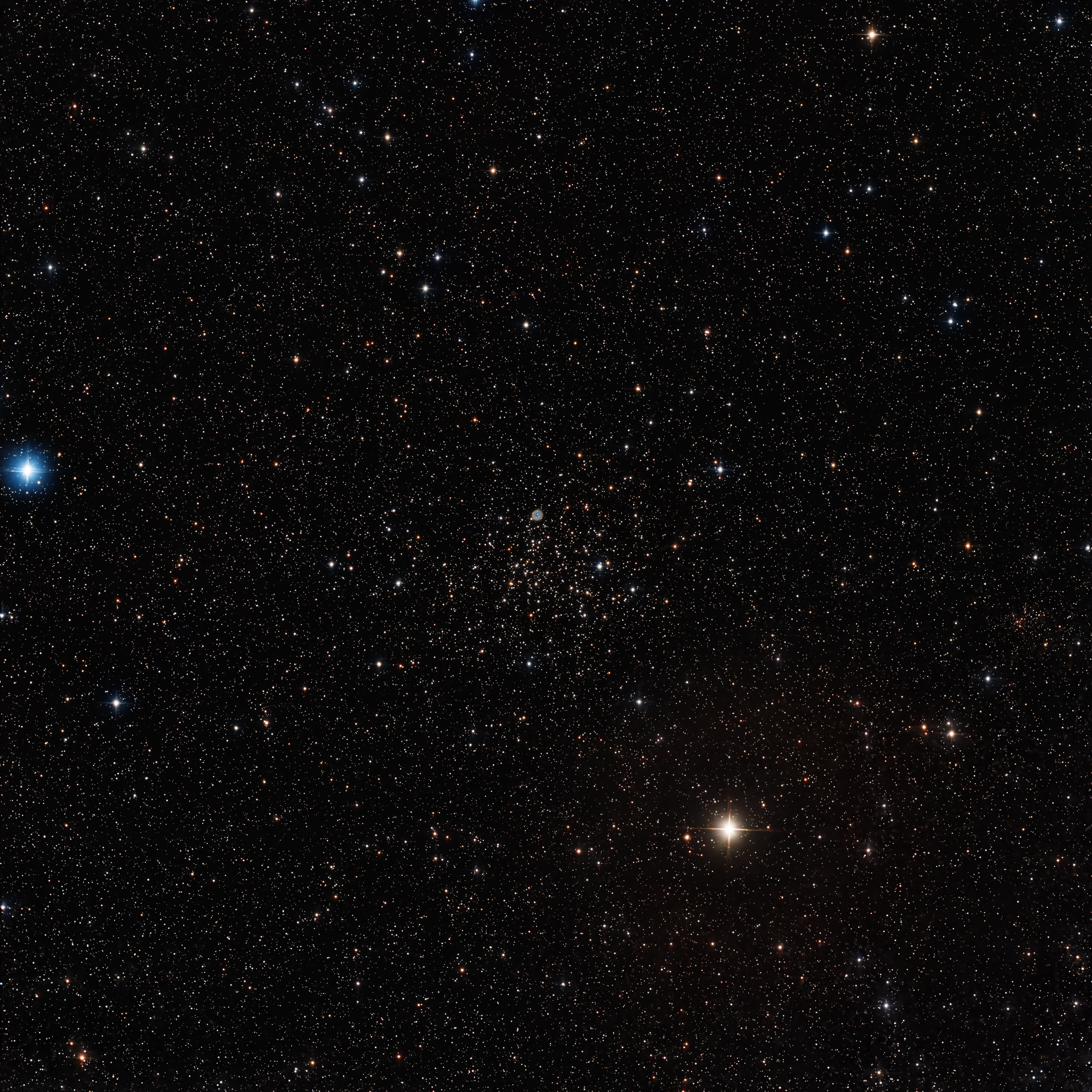 M 46 also contains the tiny planetary nebula NGC 2438